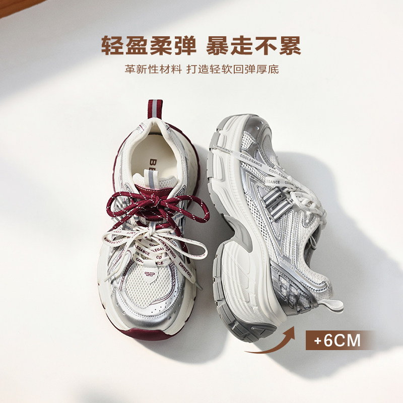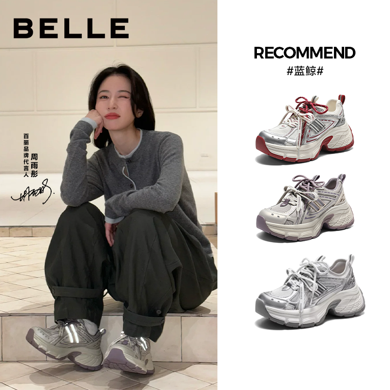 张凌赫同款百丽蓝鲸老爹鞋男女新款红色厚底商场休闲鞋E8X1DAM6预