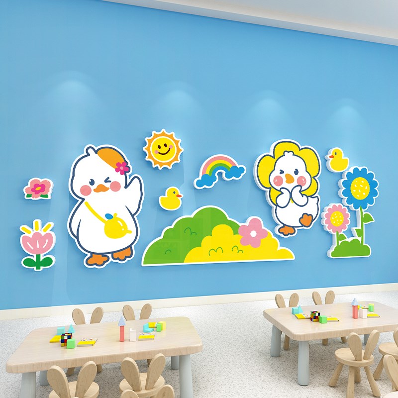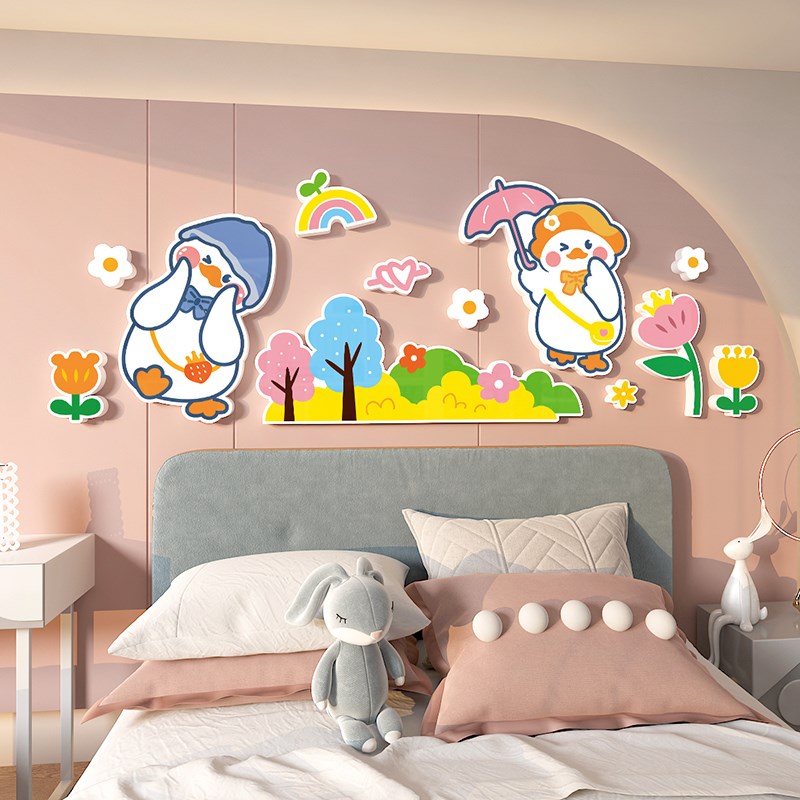 可爱鸭墙贴纸儿童房间卡通贴画女孩卧室床头墙面装饰幼儿园3d立体
