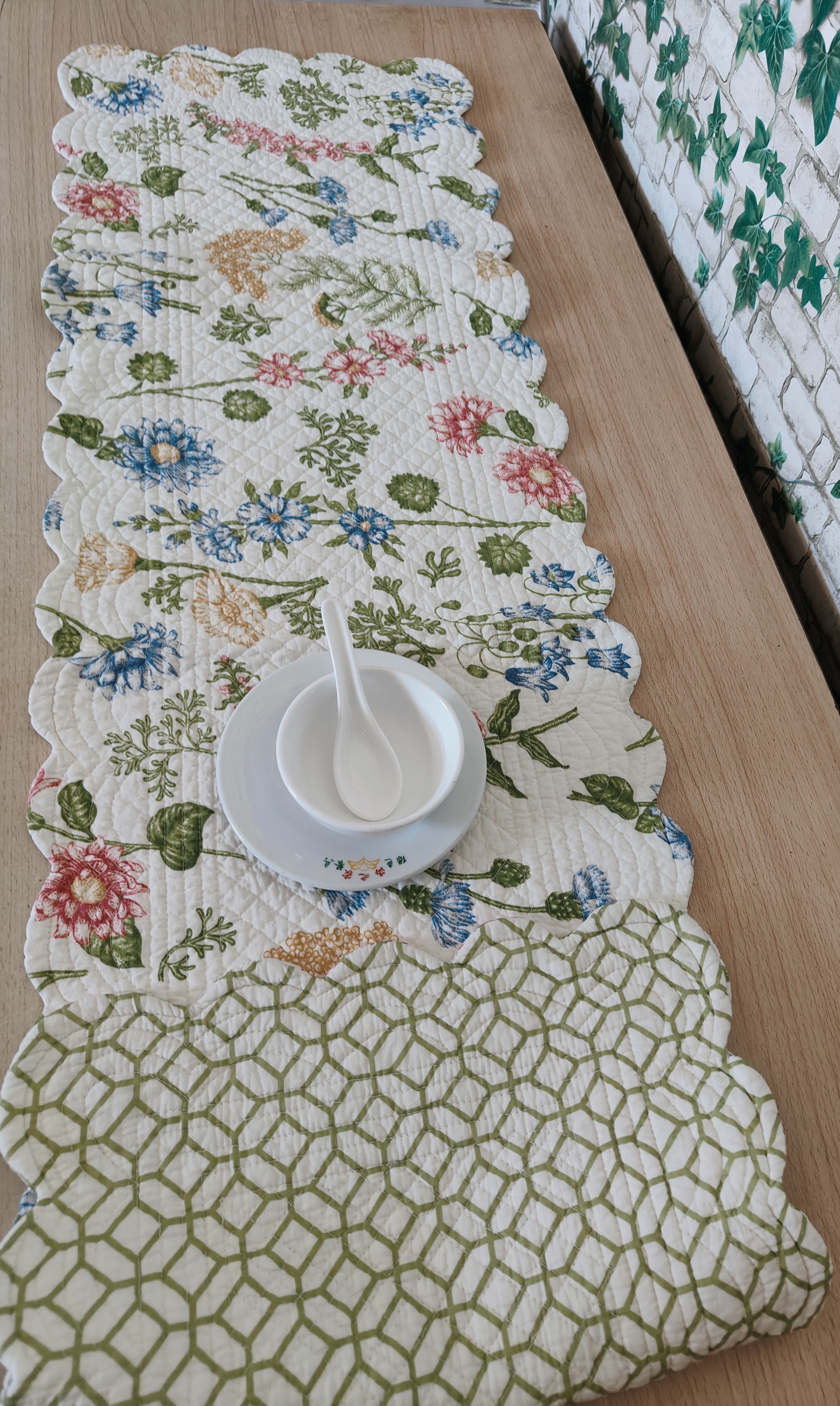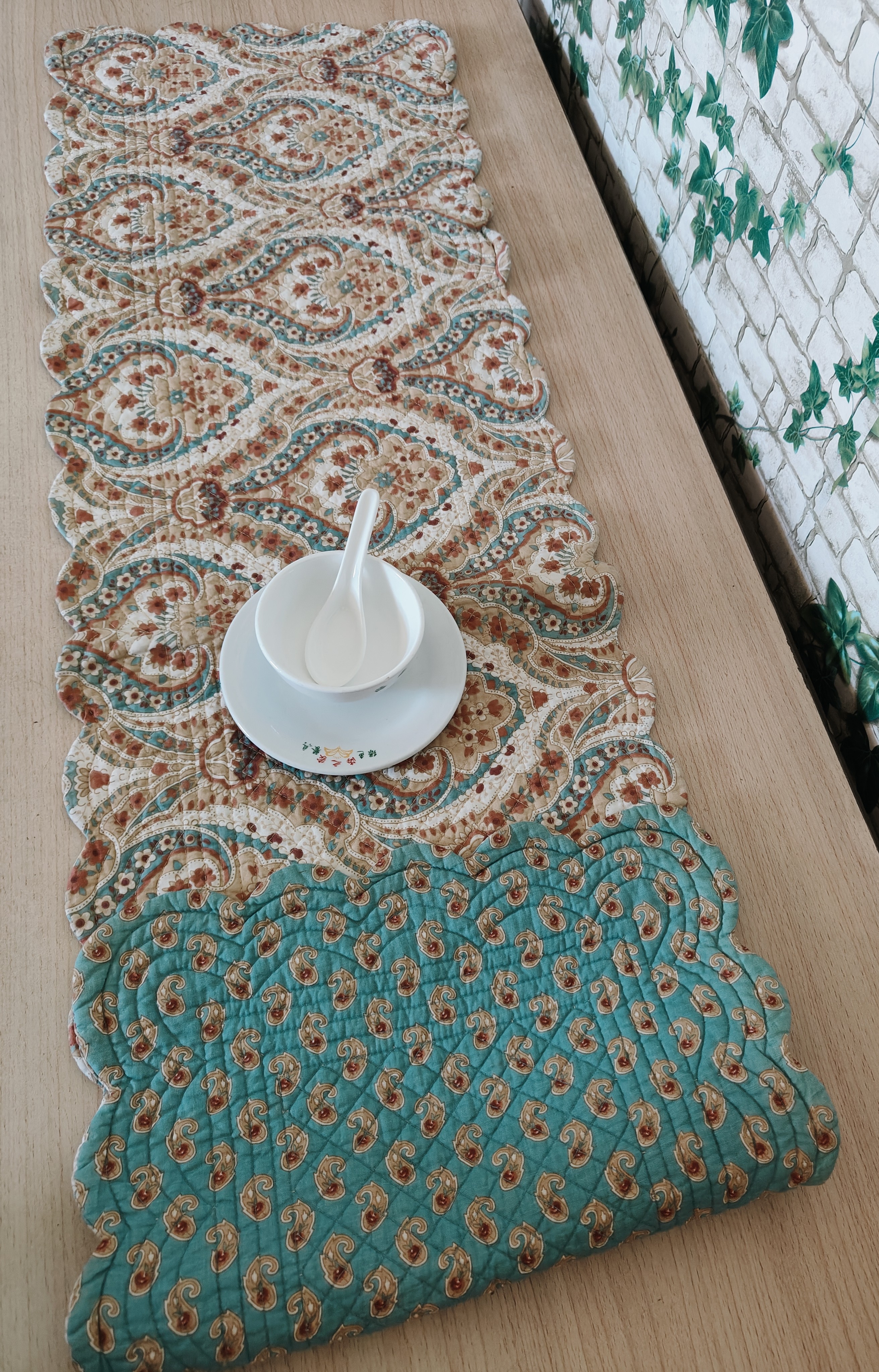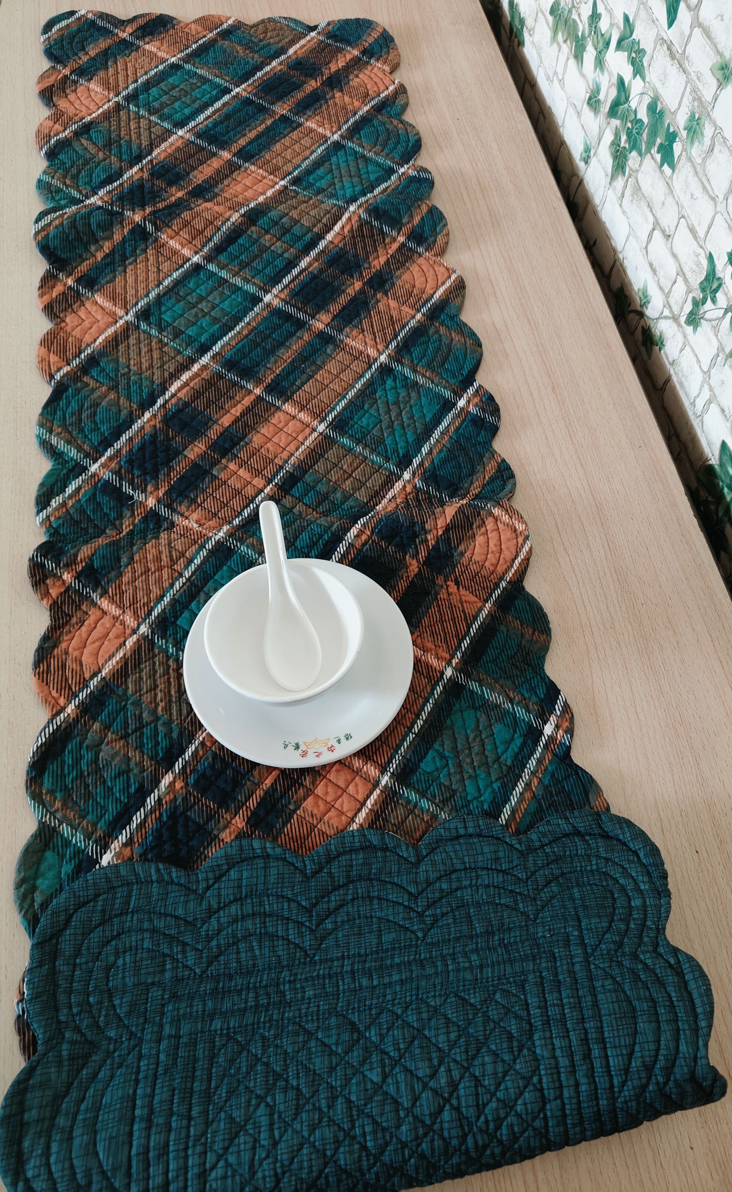 外贸原单孤品波纹边ab版双面纯棉夹棉绗缝茶几飘窗窗台书桌垫清仓