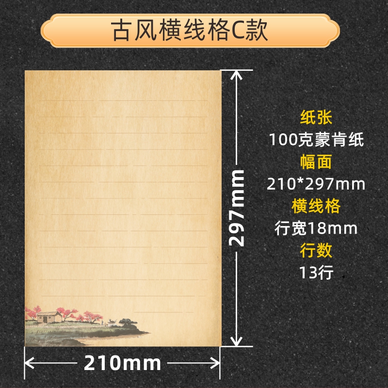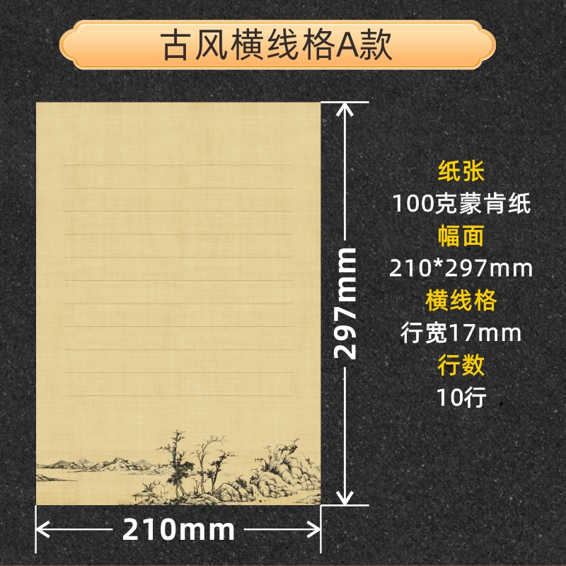 硬笔书法专用蒙肯纸古风横线系列标准A4作品纸参赛纸买一送一包邮