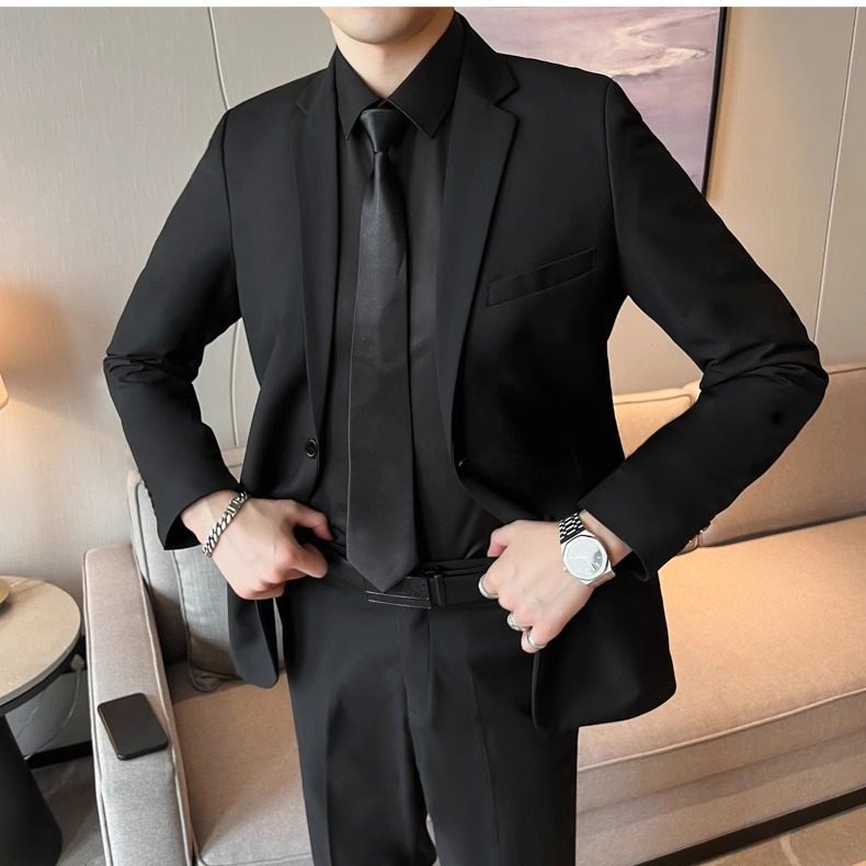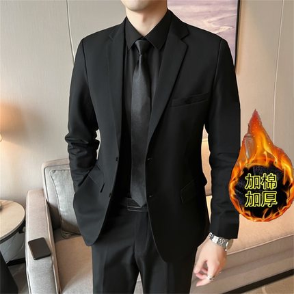 秋冬加绒加厚西装套装男结婚西装