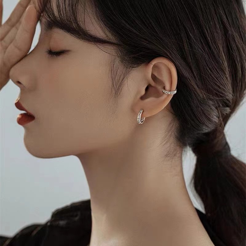 925纯银镂空星光耳夹女个性轻奢韩版百搭几何无耳洞耳骨夹