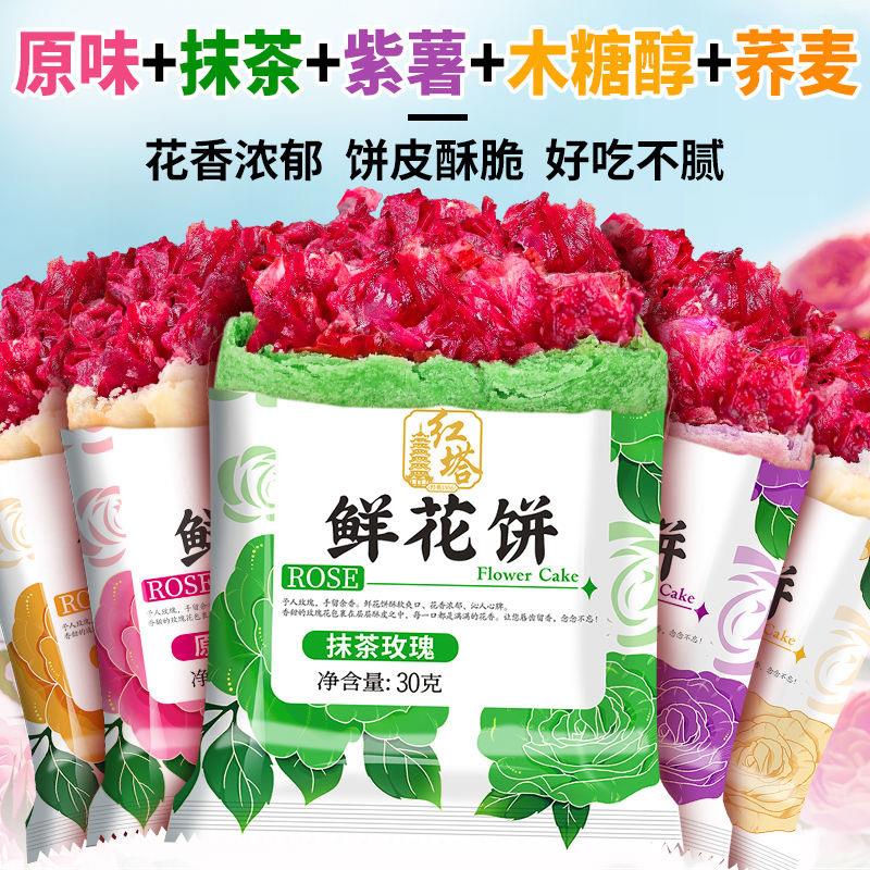 100枚鲜花饼云南特产多口味正宗玫瑰饼早餐整箱零食小吃糕点