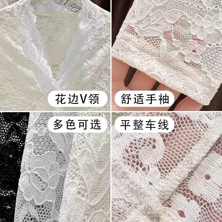 白色花边蕾丝v领打底衫2024新款女士别致小衫薄款气质设计感上衣
