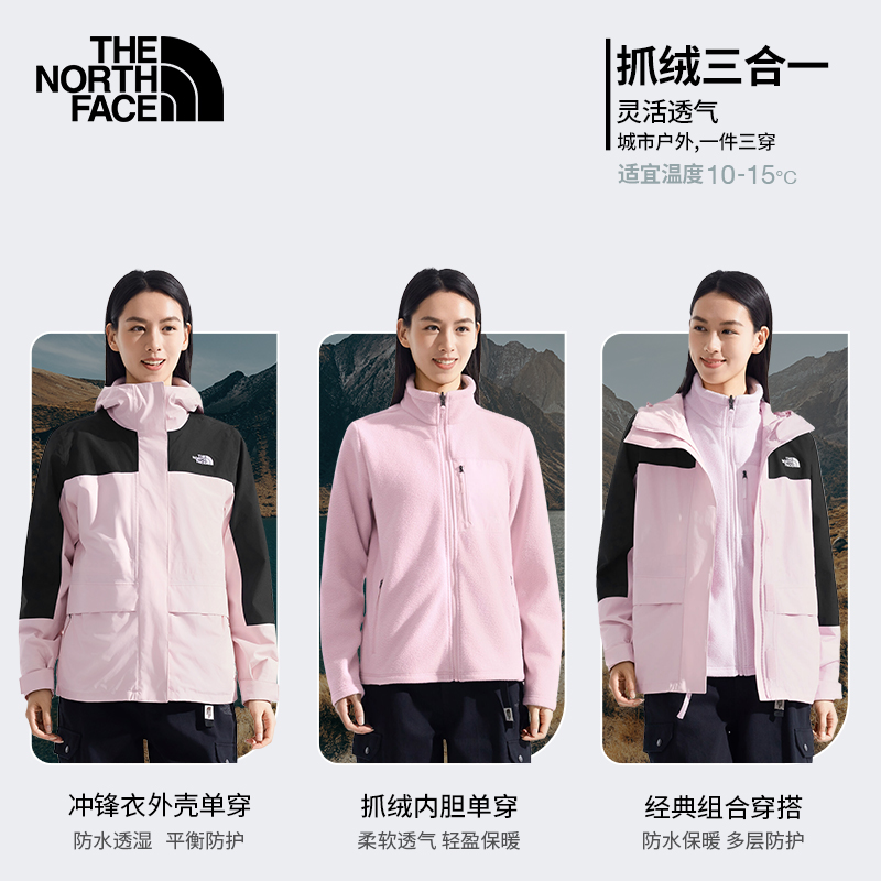 北面女抓绒三合一冲锋衣