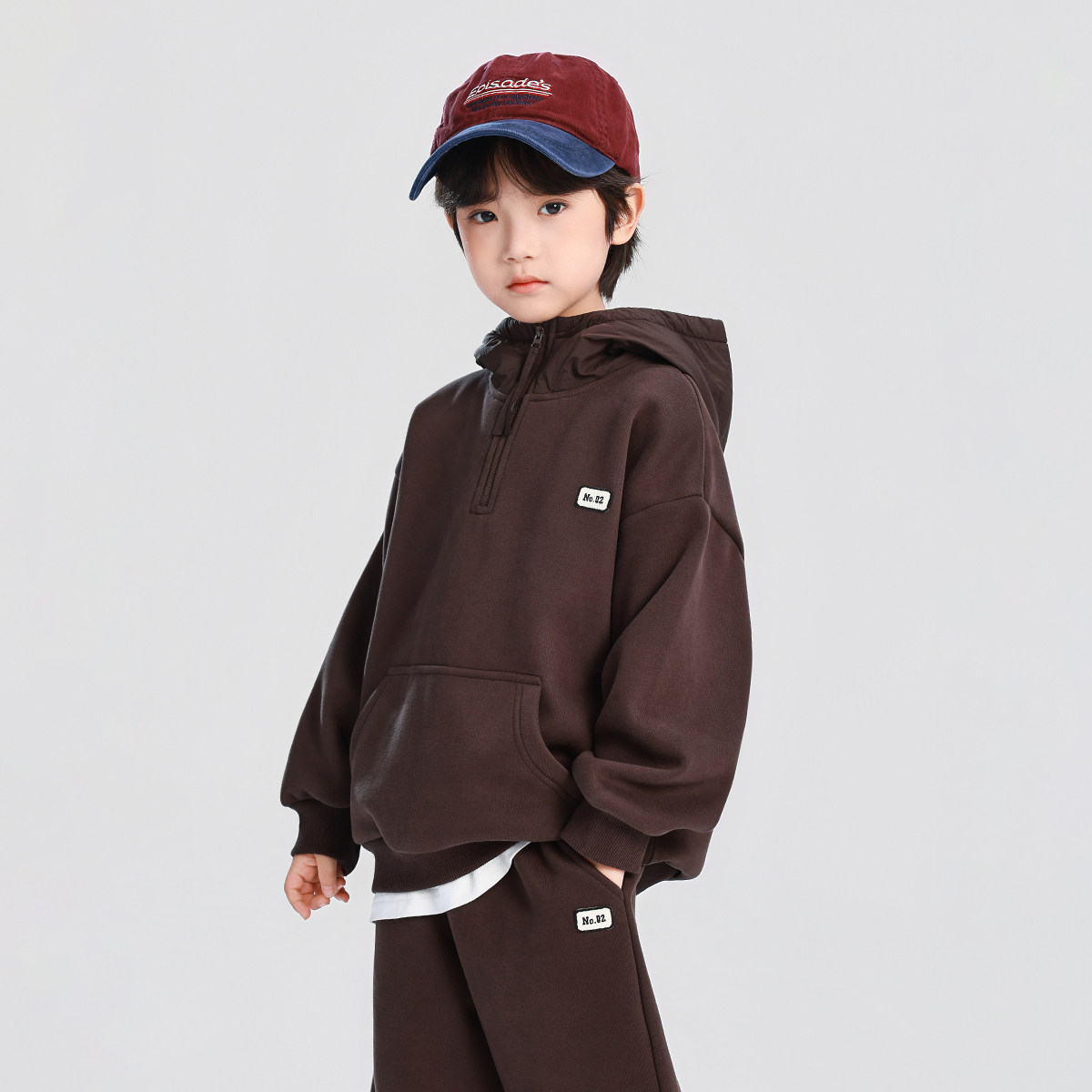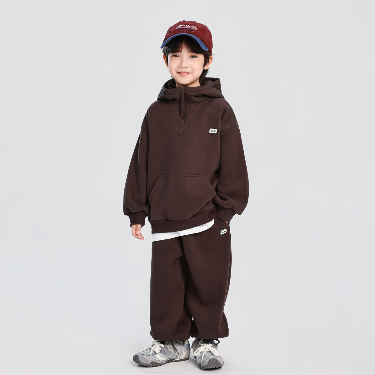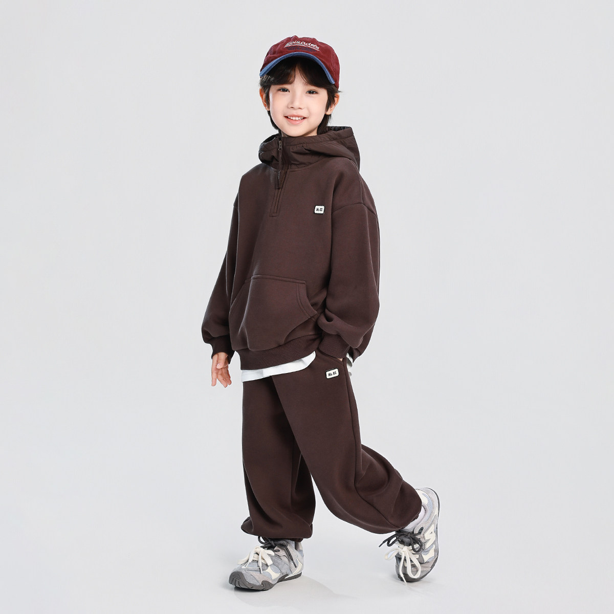 男童加绒套装2025冬装新款秋冬款儿童男孩加厚连帽卫衣长裤两件套