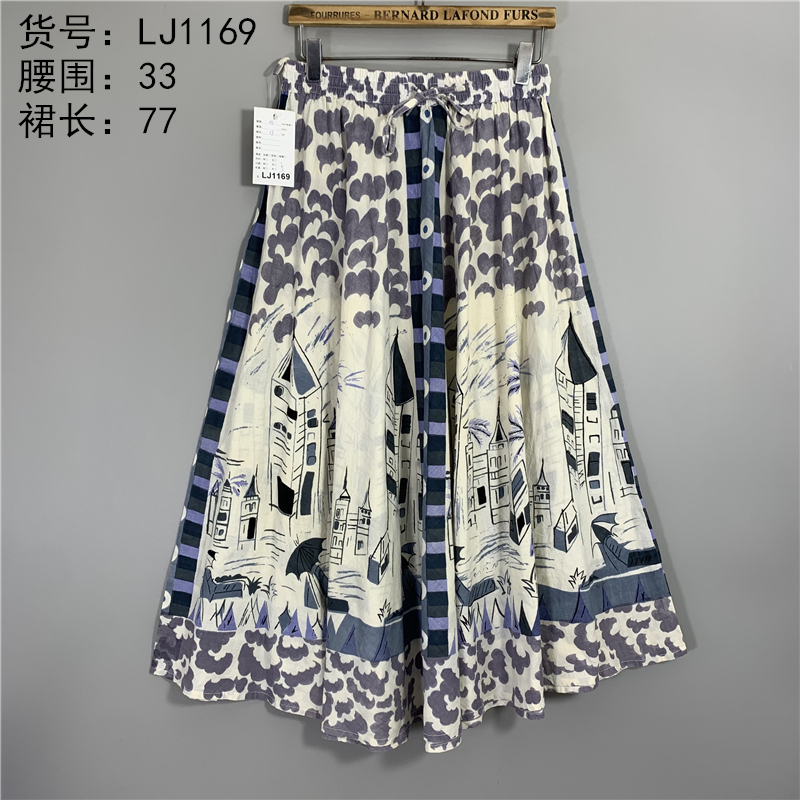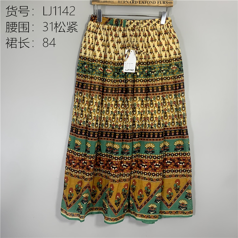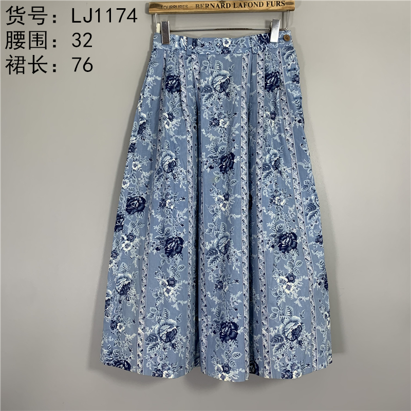 Vintage复古高腰A字日本文艺学院休闲小清新百搭花色半身中长裙夏