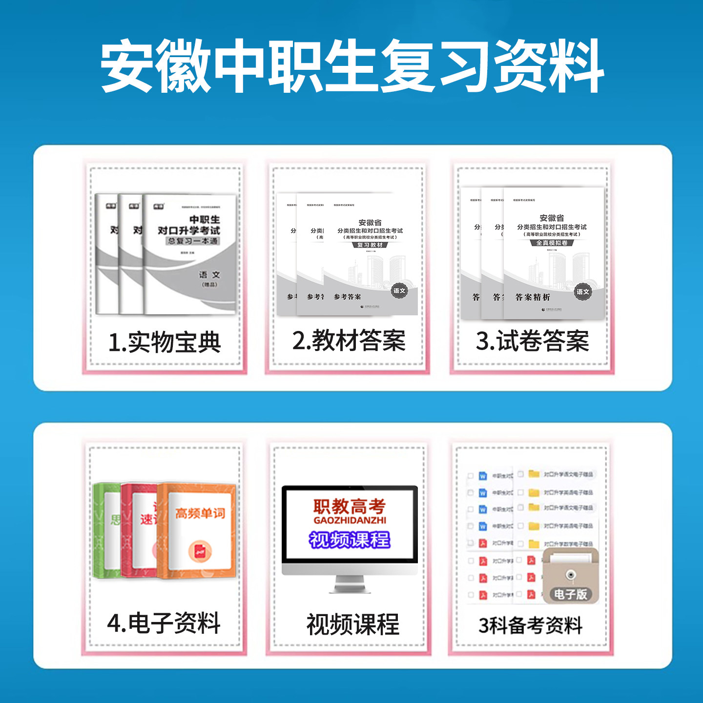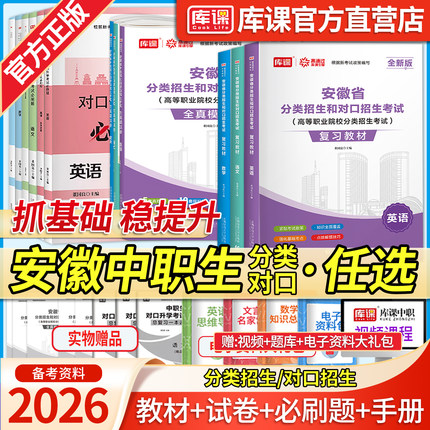 库课2026安徽中职生对口升学分类招生单招考试复习资料教材必刷题高职单招历年真题模拟试卷题库语文数学英语总复习面对面网课视频