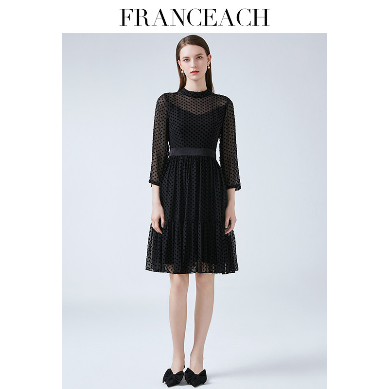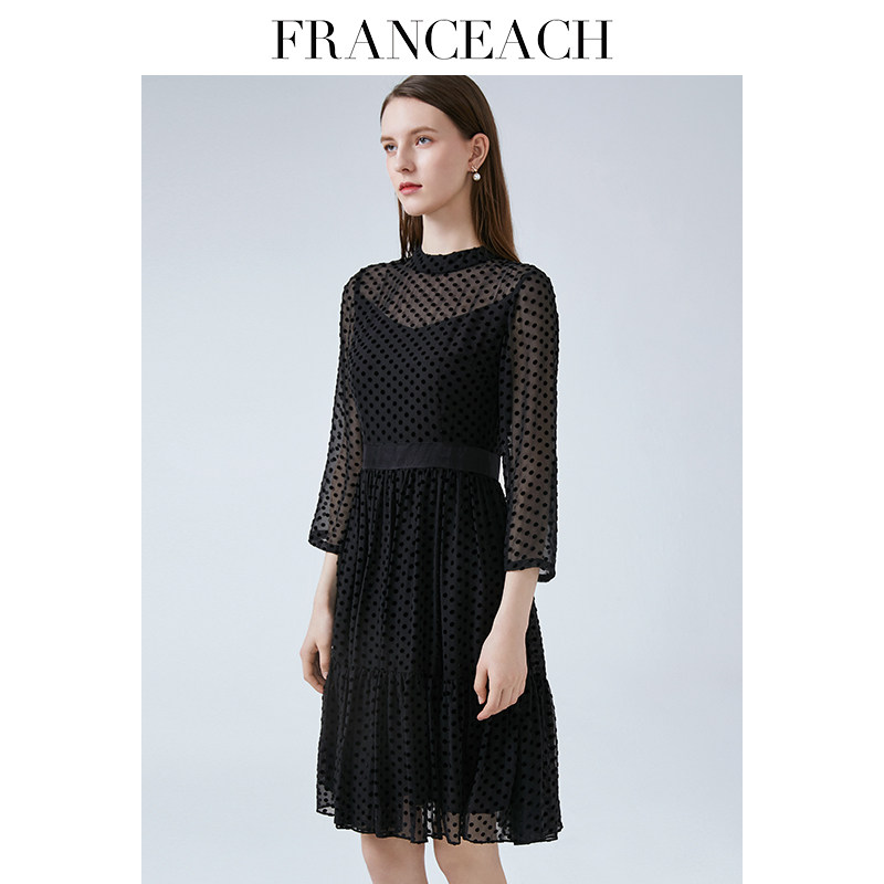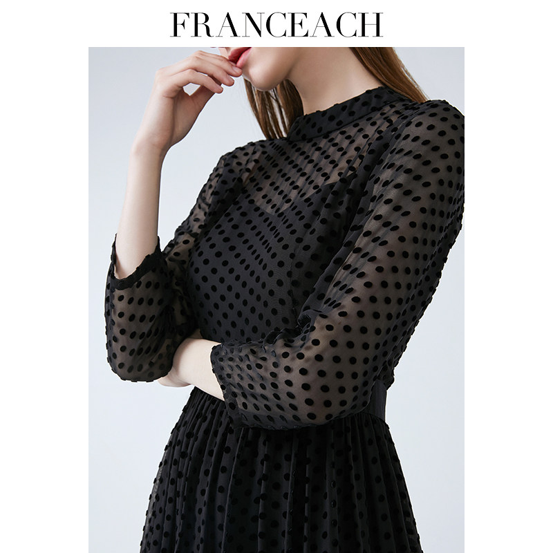 法涵意弛真丝绒连衣裙女2024年春夏新款洋气欧货气质桑蚕丝小黑裙