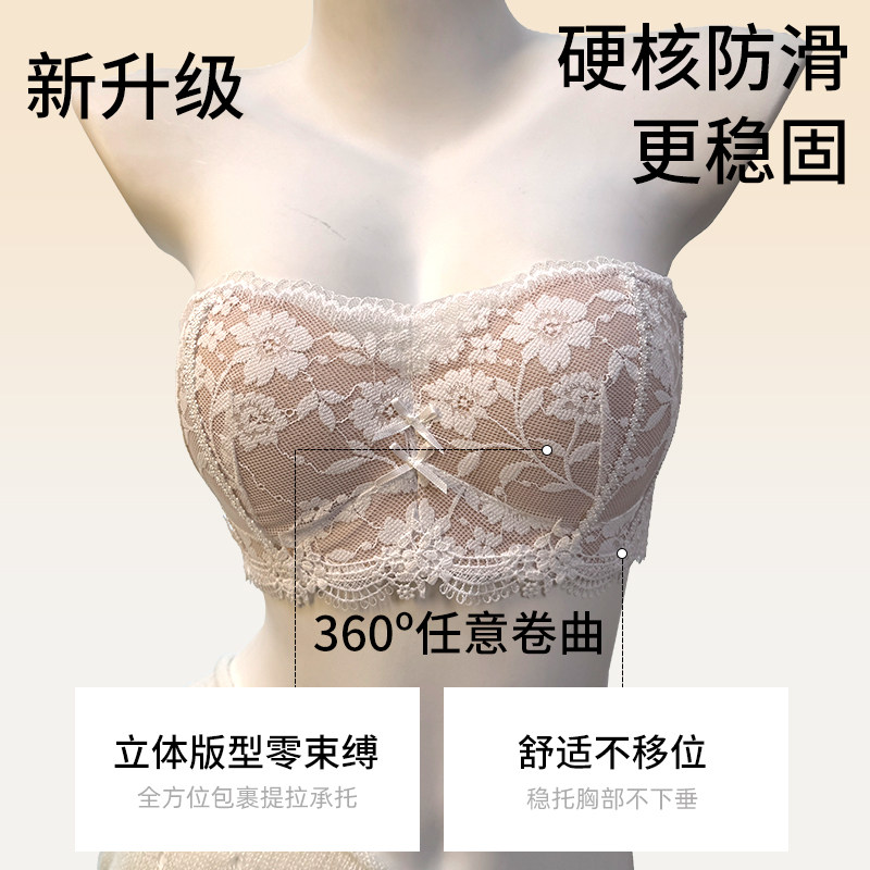 蕾丝性感抹胸内衣女小胸聚拢显大防走光裹胸无钢圈薄款束胸文胸罩