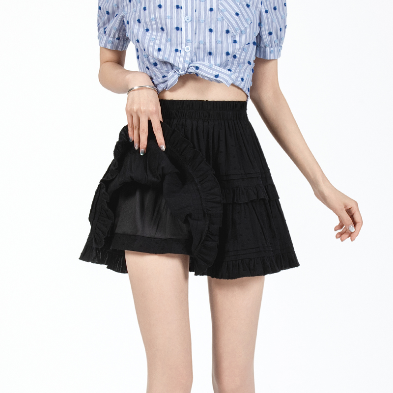 2025新款夏季甜美法式蛋糕荷叶边蕾丝A字蓬蓬半身裙女显瘦短裙