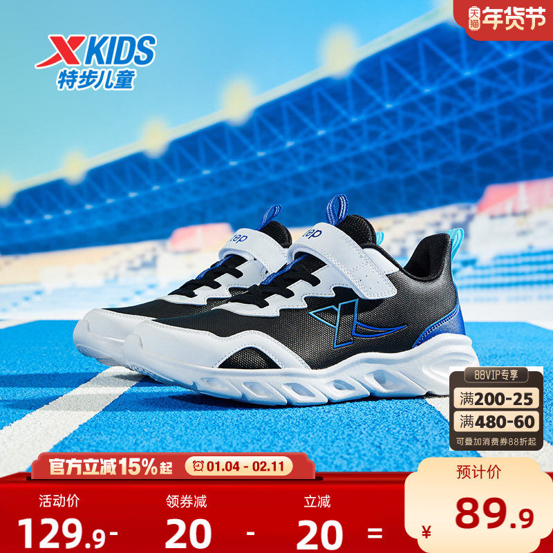 特步童鞋男童秋冬新款魔术贴跑鞋儿童缓震运动鞋大童防滑耐磨鞋子