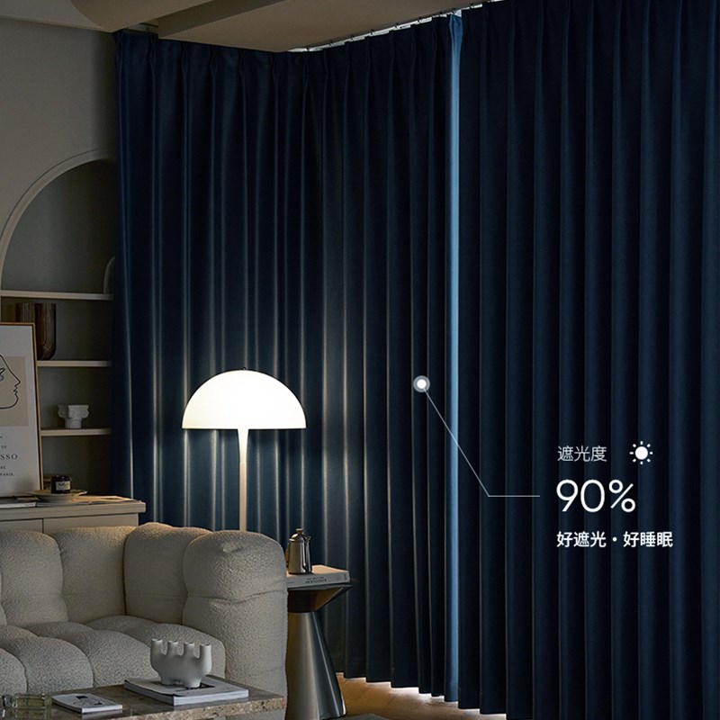 防水防尘耐脏全遮光客厅房间阳台窗帘加厚棉麻三防科技布蓝色ins