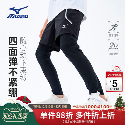 Mizuno美津浓儿童运动长裤假两件户外打底休闲男童女童春秋新款裤