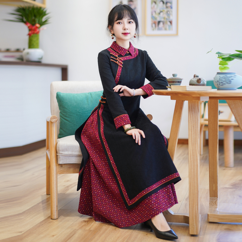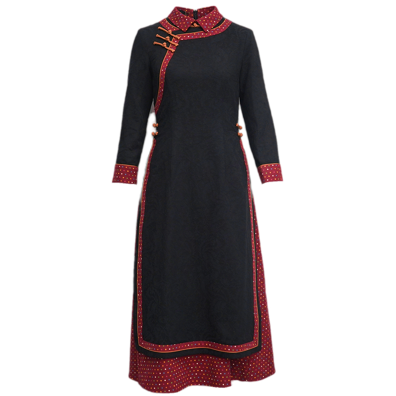 如意风显瘦奥黛长款旗袍秋冬新款气质连衣裙中年妈妈装长裙23J280