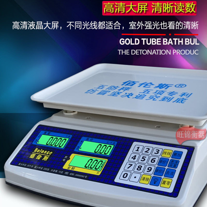 佰伦斯防水秤 十年老店 水产海鲜蔬菜专用电子秤商用小型30kg台称