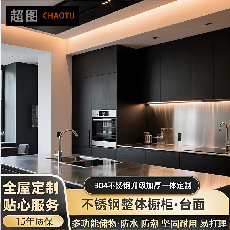 上海不锈钢橱柜定制铝蜂窝不锈钢柜体10mm实心台面耐刮防刮定做