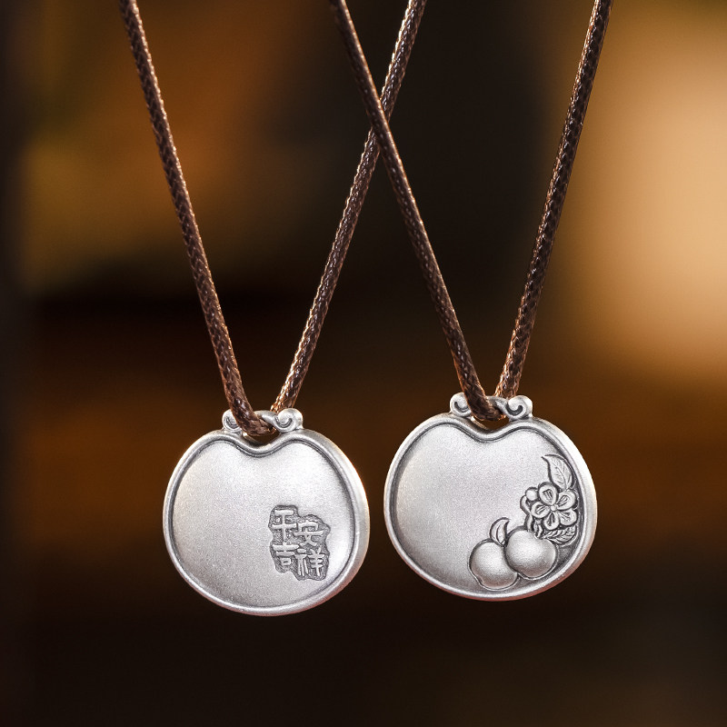 足银999实心平安果宝宝吊坠纯银小众高级复古挂坠女锁骨项链银饰