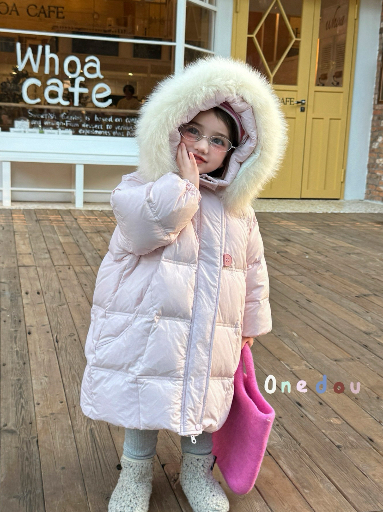 凡妈童装2025冬季新款女童小童韩版宽松版大毛领中长厚羽绒服洋气