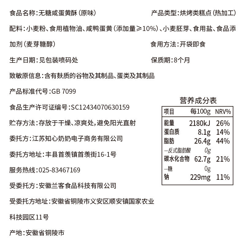 知心奶奶孕妇低糖蛋黄酥饼干120g