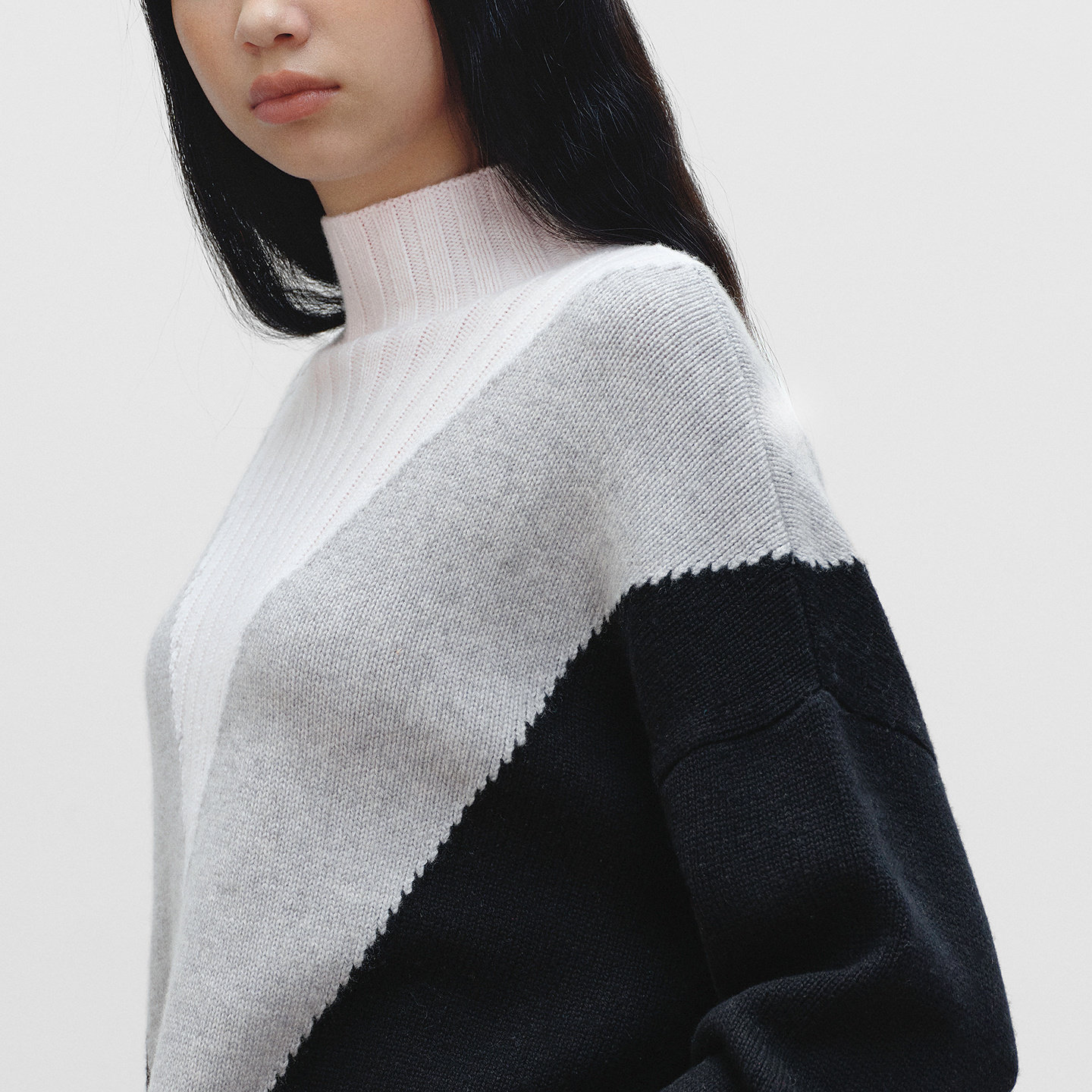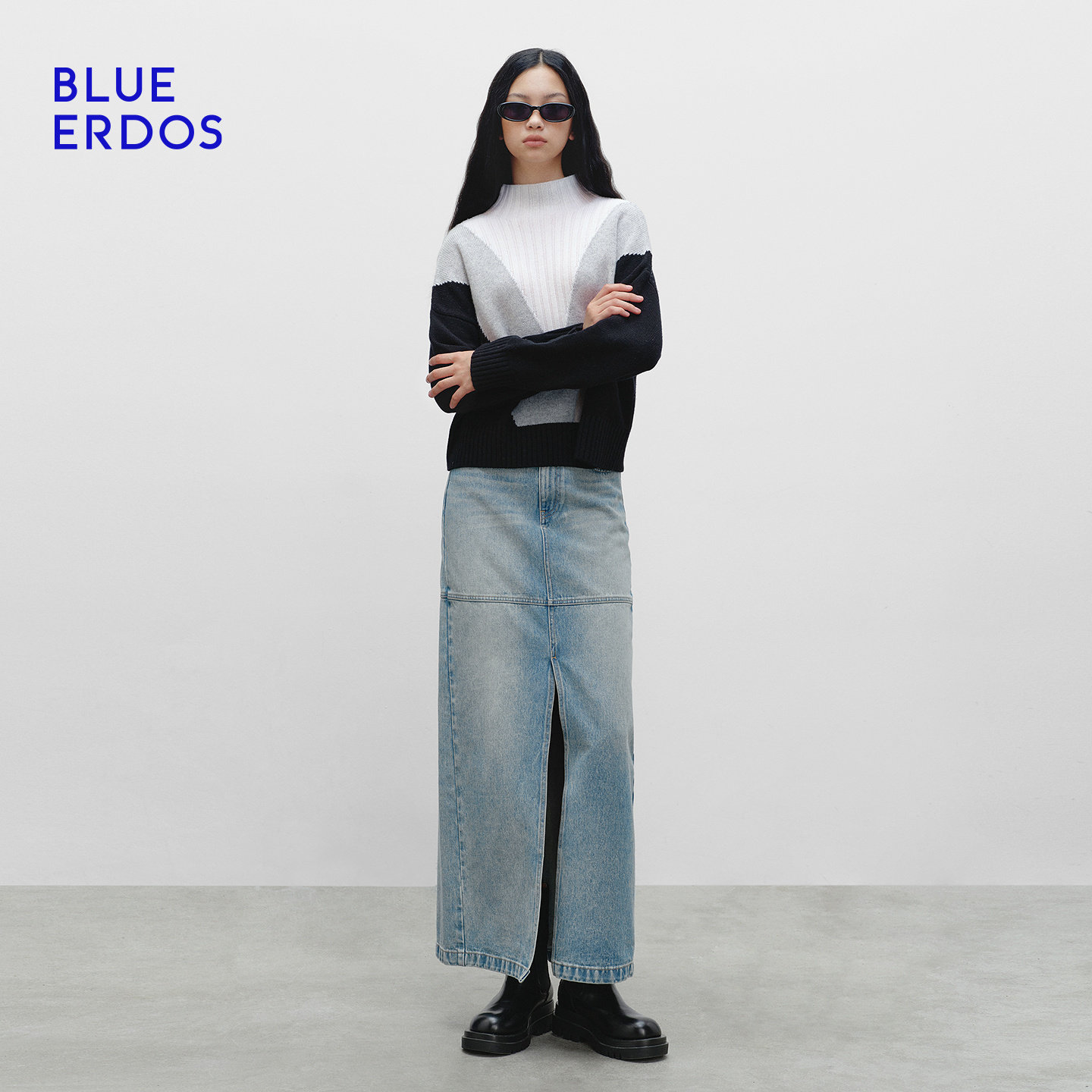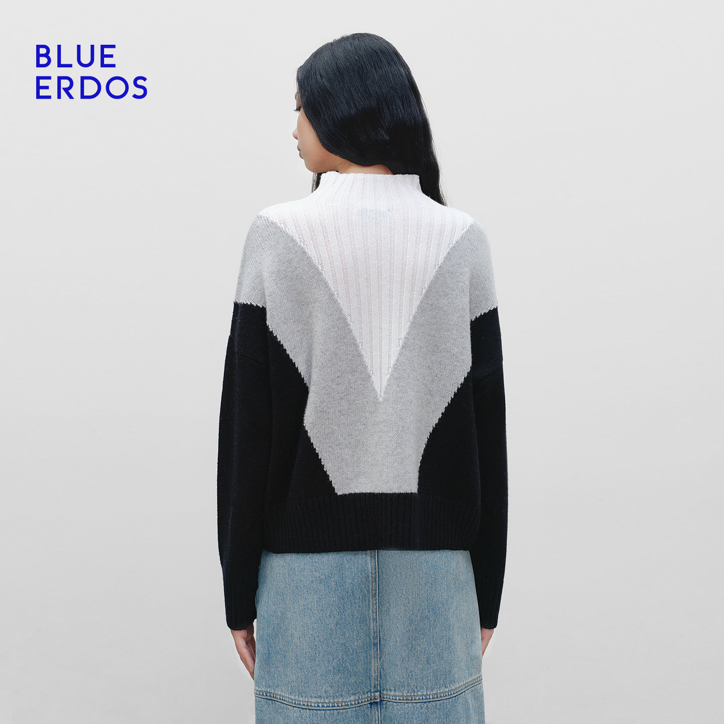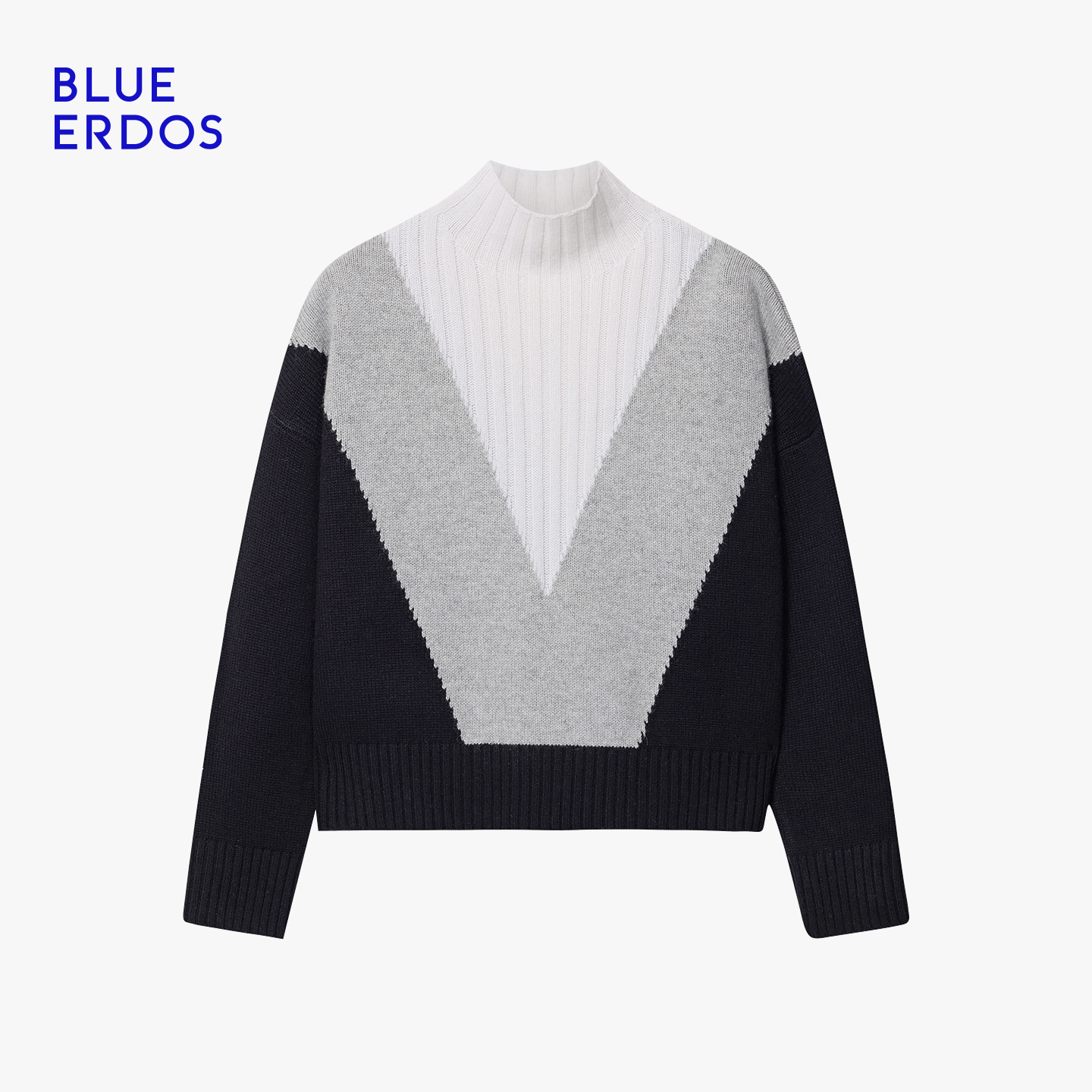 BLUE ERDOS 冬季新品时尚简约羊毛羊绒高领拼接提花女针织衫