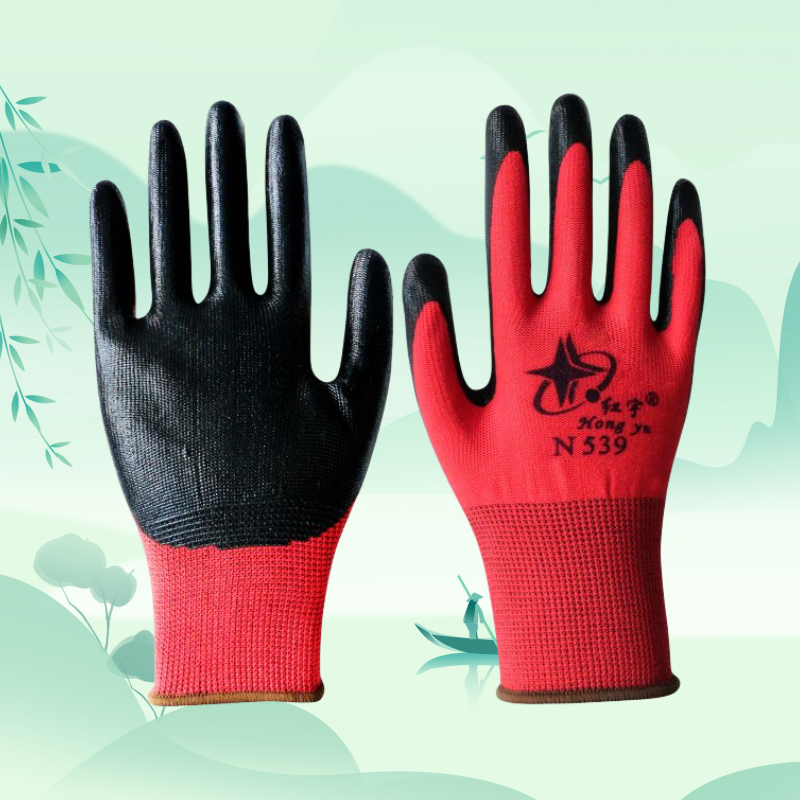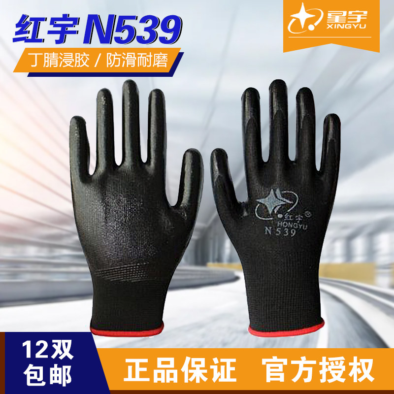红宇N539彩纱涂胶耐磨防滑车床油漆工厂工地作业防护用品劳保手套
