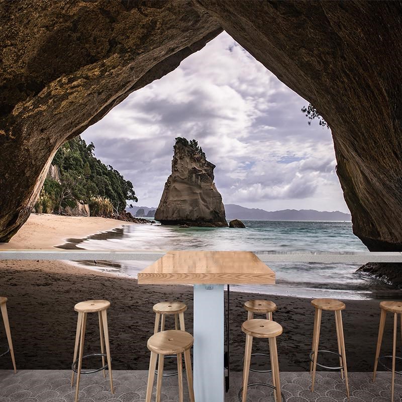 自然风景背景墙布海边p海景饭厅壁纸3D立体感酒店民宿环保背景墙