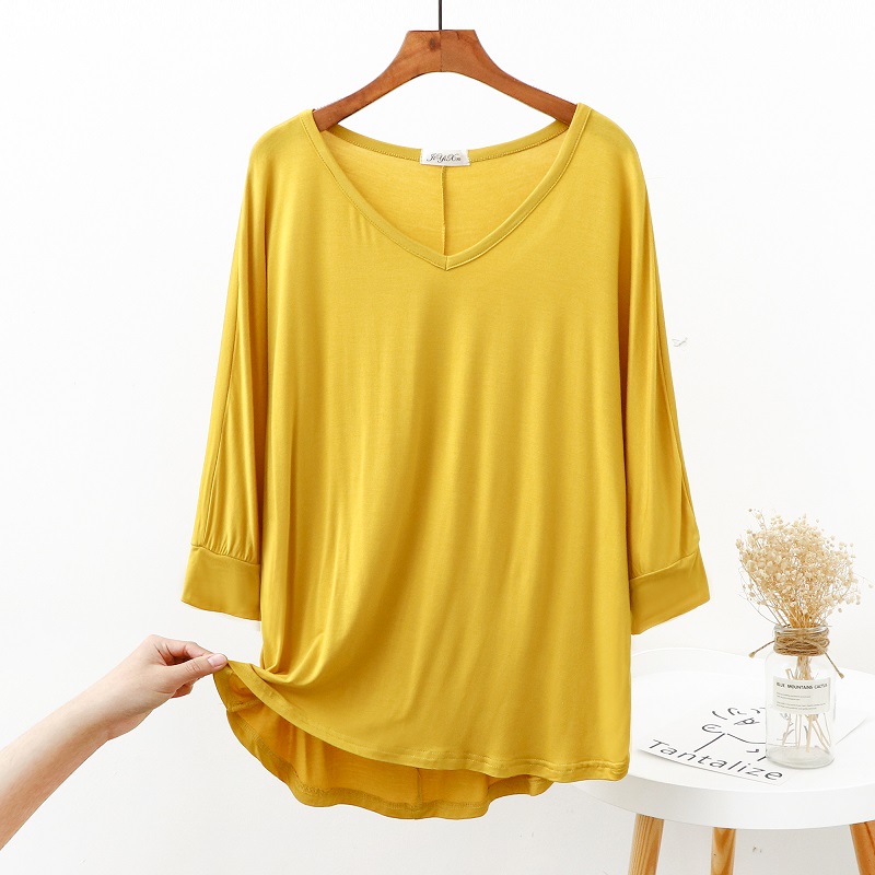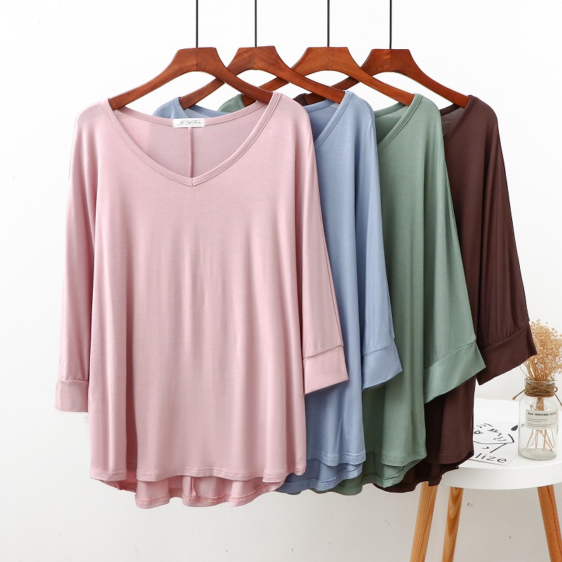 女纯色宽松大码蝙蝠袖上衣春夏遮肉短袖t恤莫代尔中袖显瘦打底衫