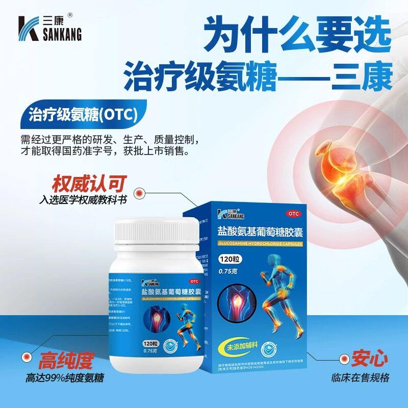 三康维尔固盐酸氨基葡萄糖胶囊骨关节炎护膝中老年补充氨糖旗舰店