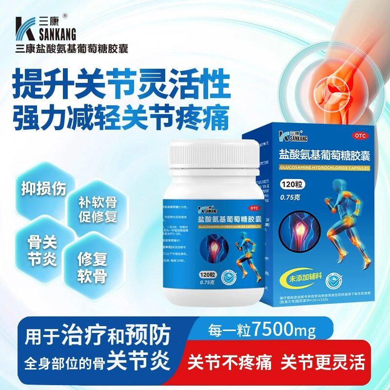 【自营】【三康】盐酸氨基葡萄糖胶囊0.75g*40粒/盒骨关节炎关节膝关节疼痛骨痛