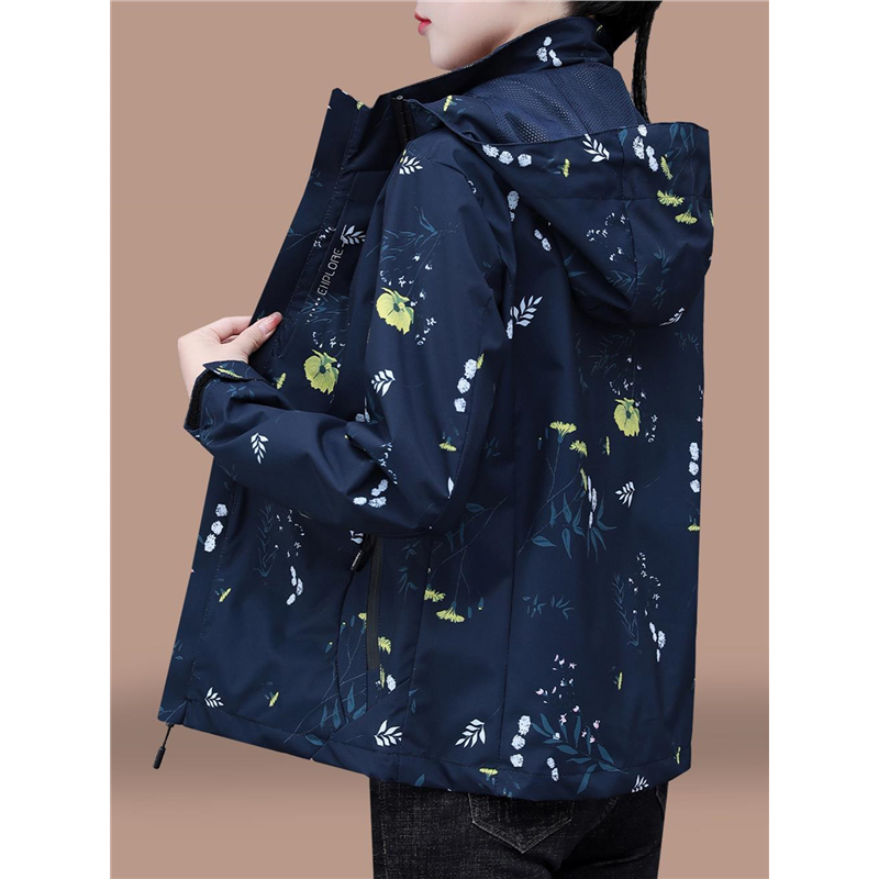 花色冲锋衣外套女春秋薄款2025新款中年妈妈时尚宽松连帽夹克上衣