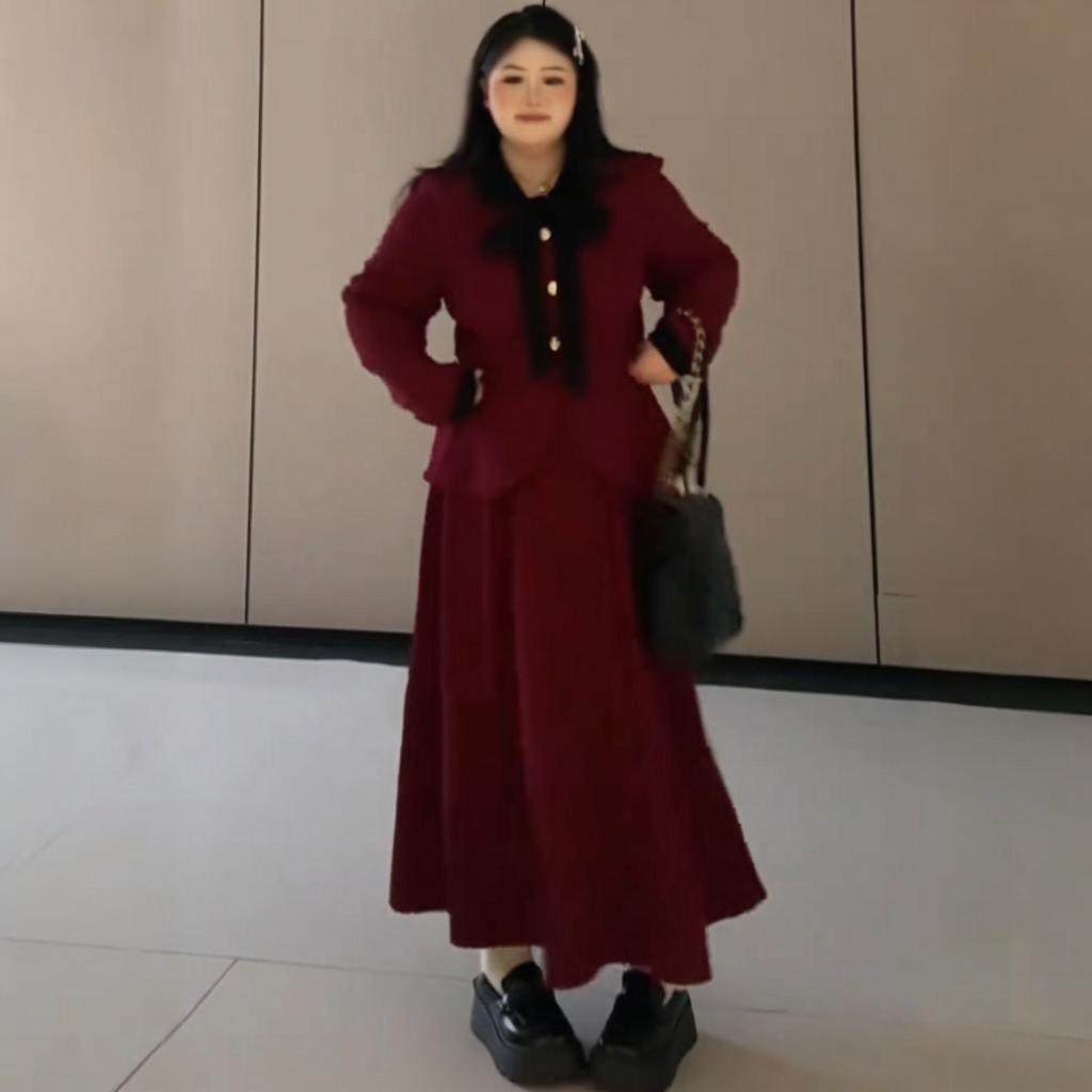 轻奢时尚名媛大码秋冬千金风显瘦套装半身裙小香风遮肉宽松两件套