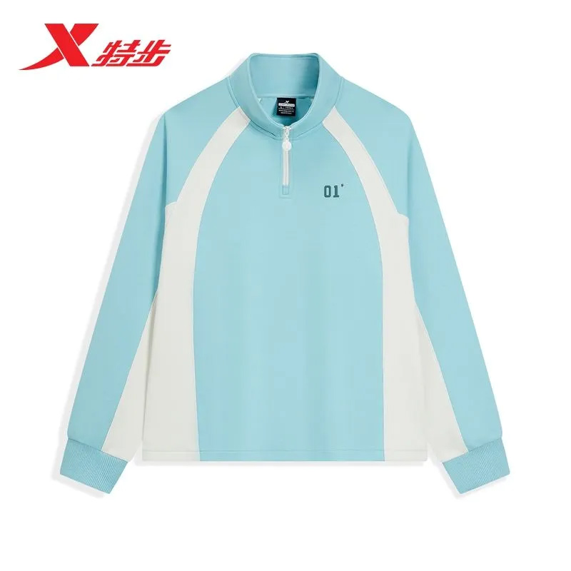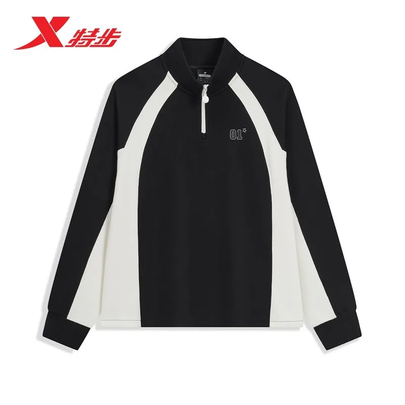 特步半拉链套头卫衣女2025秋季新款休闲高领运动上衣975328920187