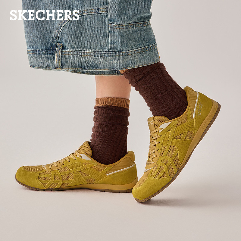 斯凯奇闪穿德训鞋|2026春季女复古黄色赛车鞋休闲运动鞋薄底板鞋