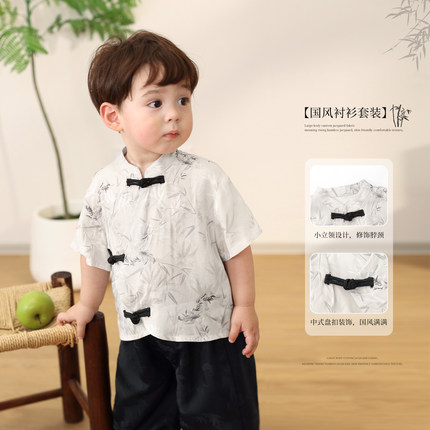 小O爸男婴童 宝宝短袖套装夏季2025新款中国风衬衣婴儿新中式汉服