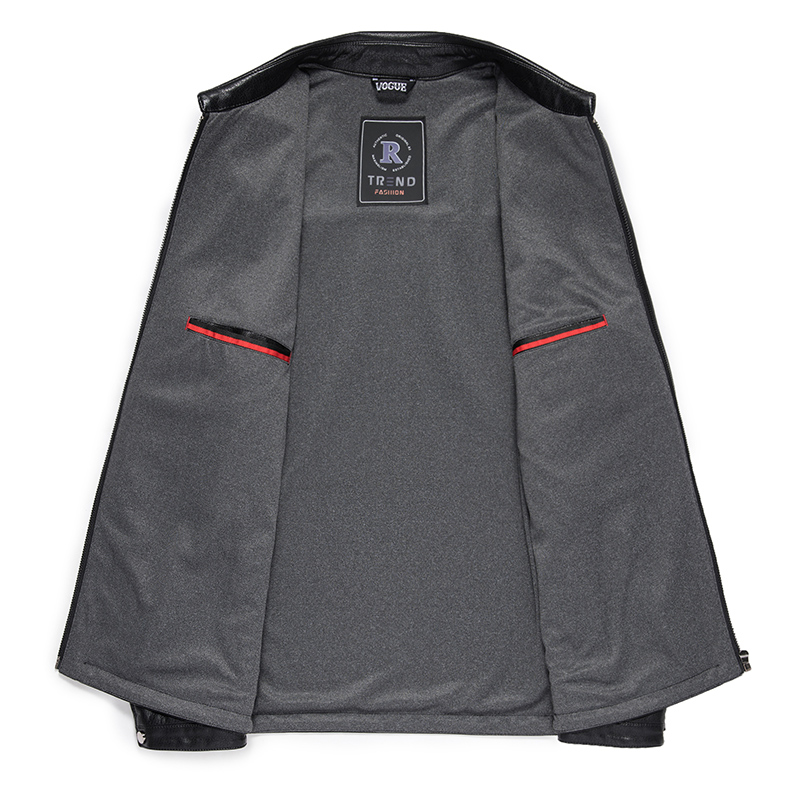 海宁真皮黑色休闲皮衣男夹克翻领