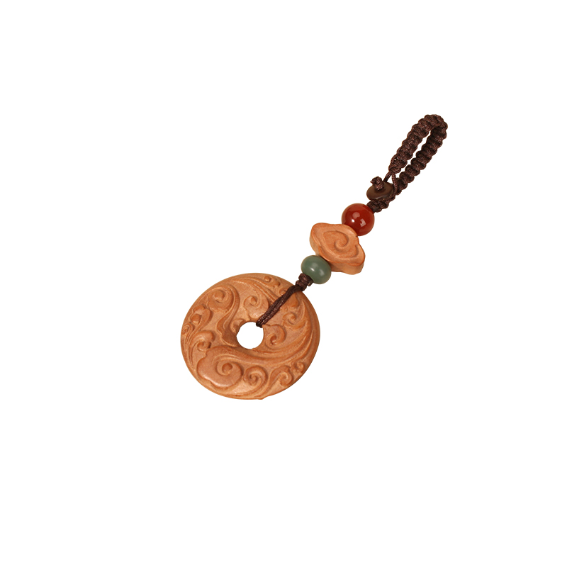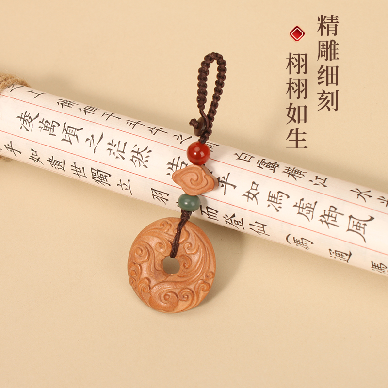 桃木平安扣汽车钥匙扣挂件本命年好运钥匙链挂坠男女个性创意礼品