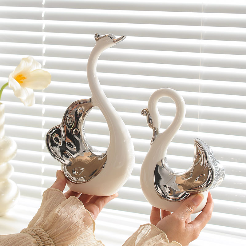 轻奢家居装饰品工艺品客厅酒柜陶瓷摆件天鹅房间摆设结婚乔迁礼物