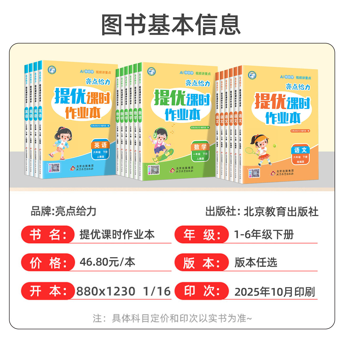2026春亮点给力提优课时作业本一二三四五六年级上册语文数学人教版江苏版人教北师版英语译林小学教材同步训练练习册天天练教辅书