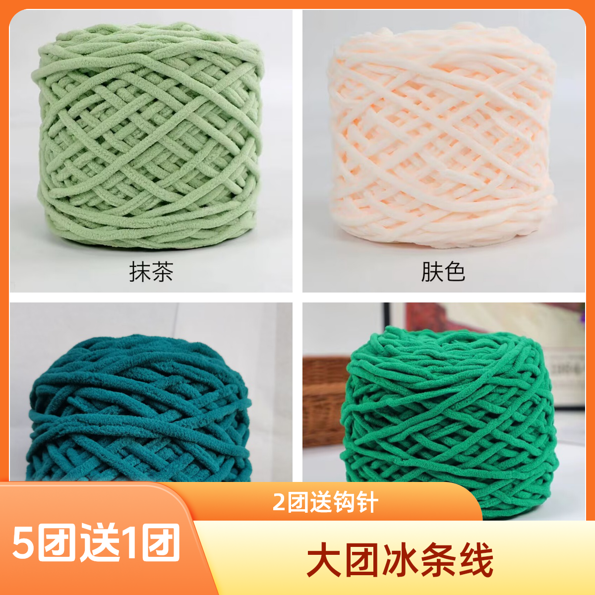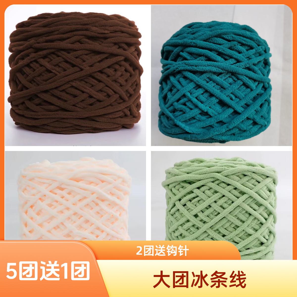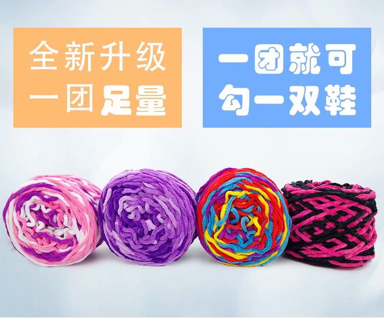 新款手工diy编织粗毛线冰条线宝宝线织围巾线勾鞋子送钩拖鞋教程