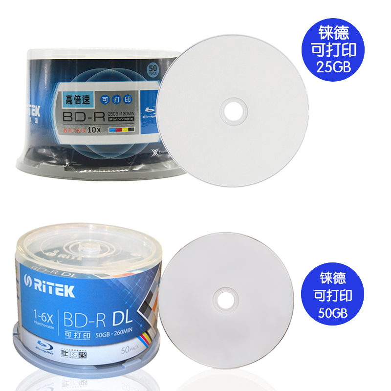 中环25G蓝光BD-R可打印空白刻录光盘铼德50G蓝光BD三菱100G档案级