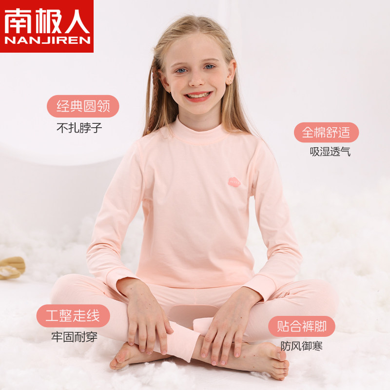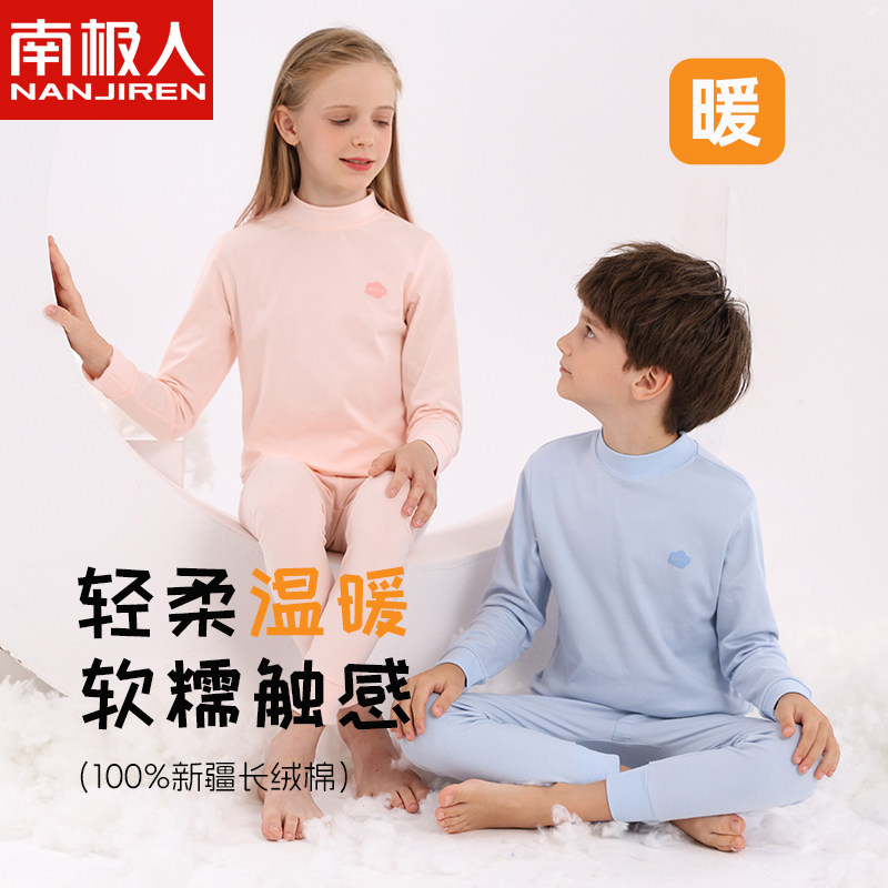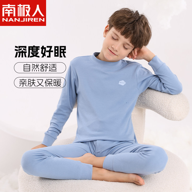 南极人儿童内衣套装女童秋衣秋裤男童纯棉内穿圆领保暖打底棉毛衫