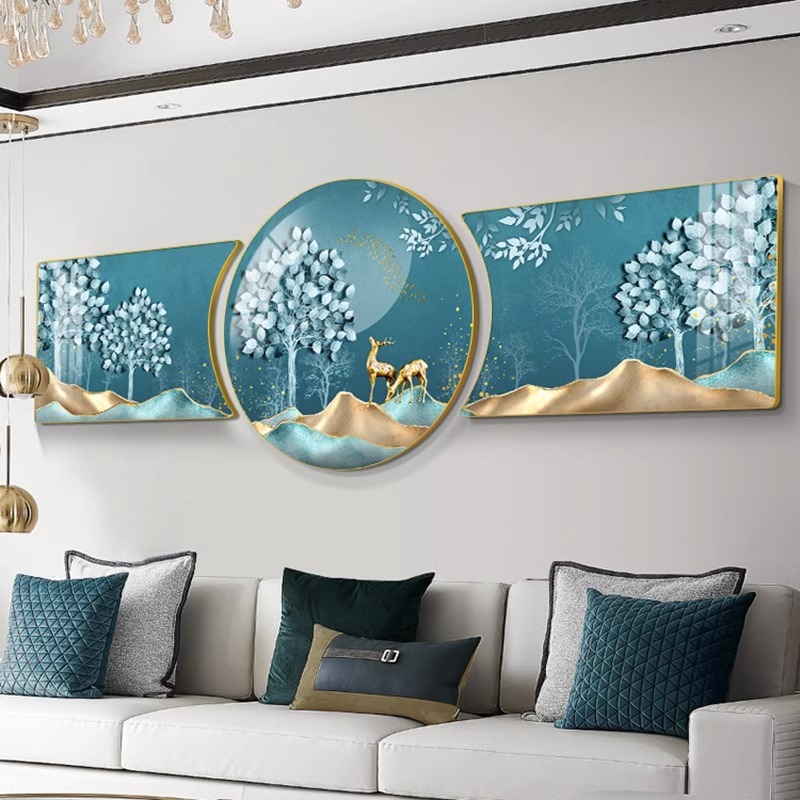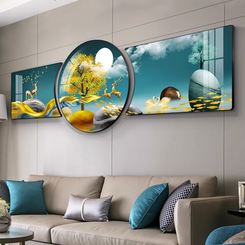 现代轻奢客厅装饰画沙发背景墙挂画高档大气壁画墙壁新款三联墙画