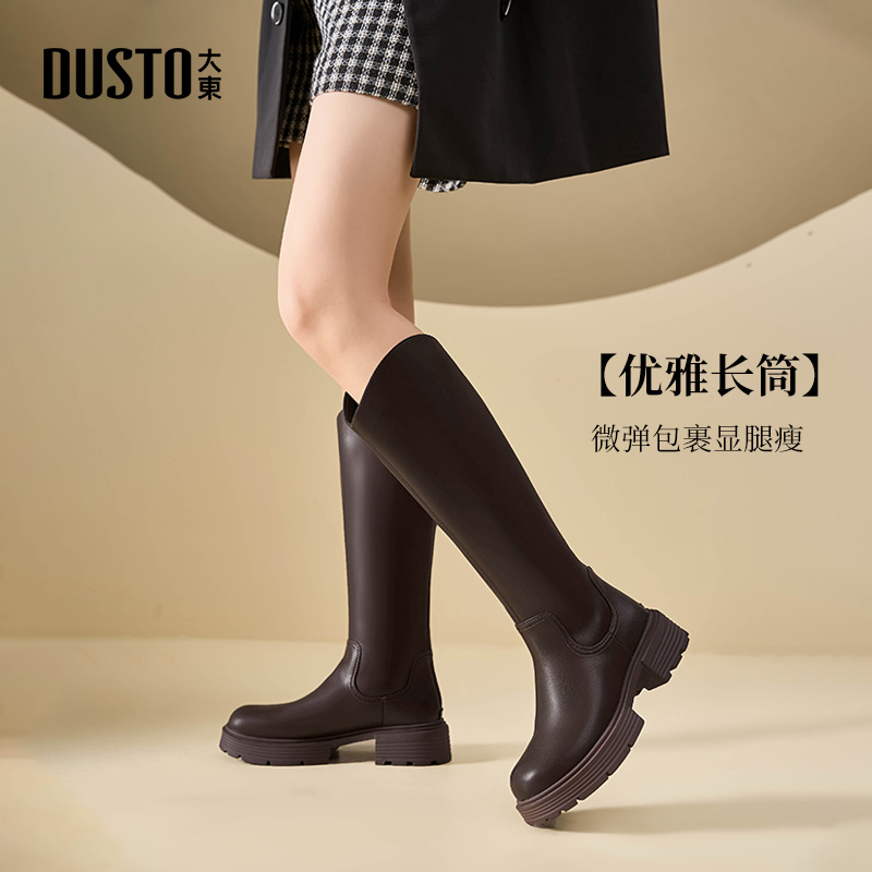 大东骑士靴女鞋2025冬季新款时尚休闲粗跟后拉链中跟圆头D0216