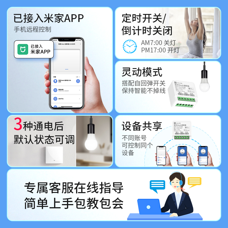 已接入米家APP通断器蓝牙mesh支持小爱同学控制灵动语音开关模块