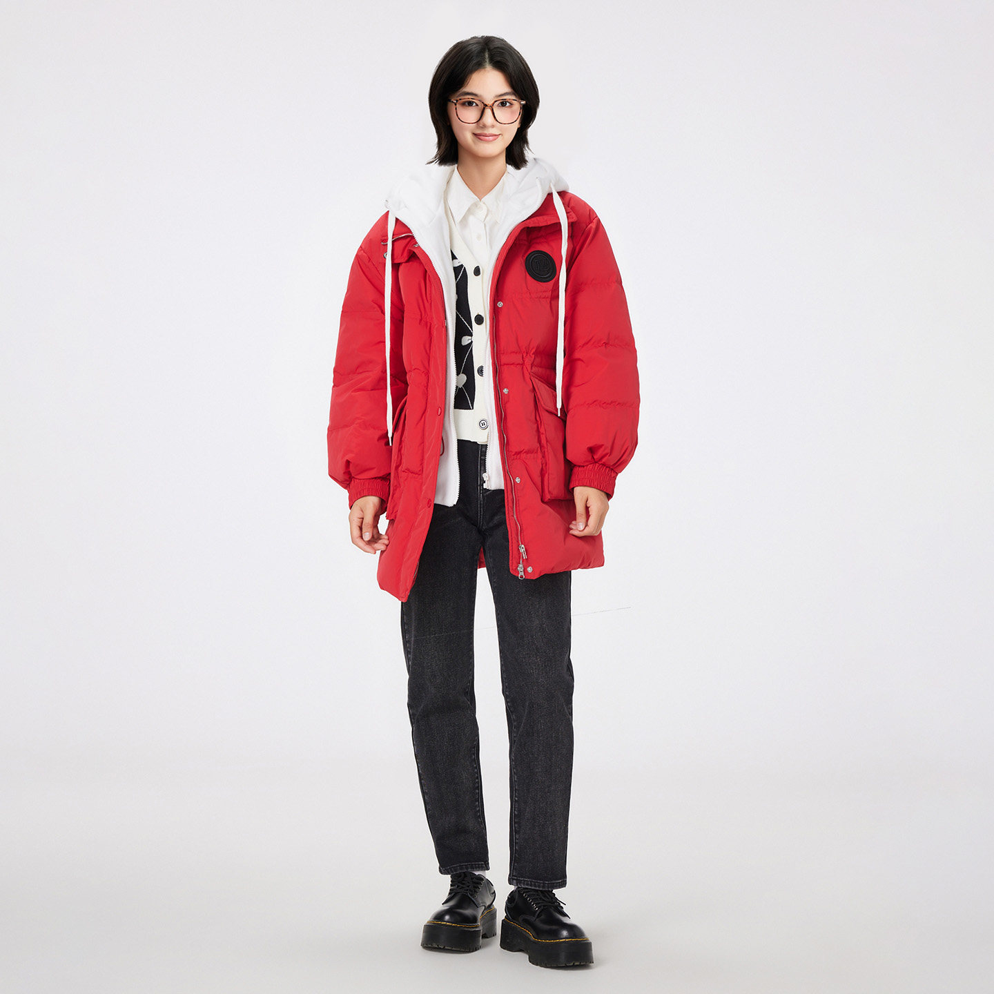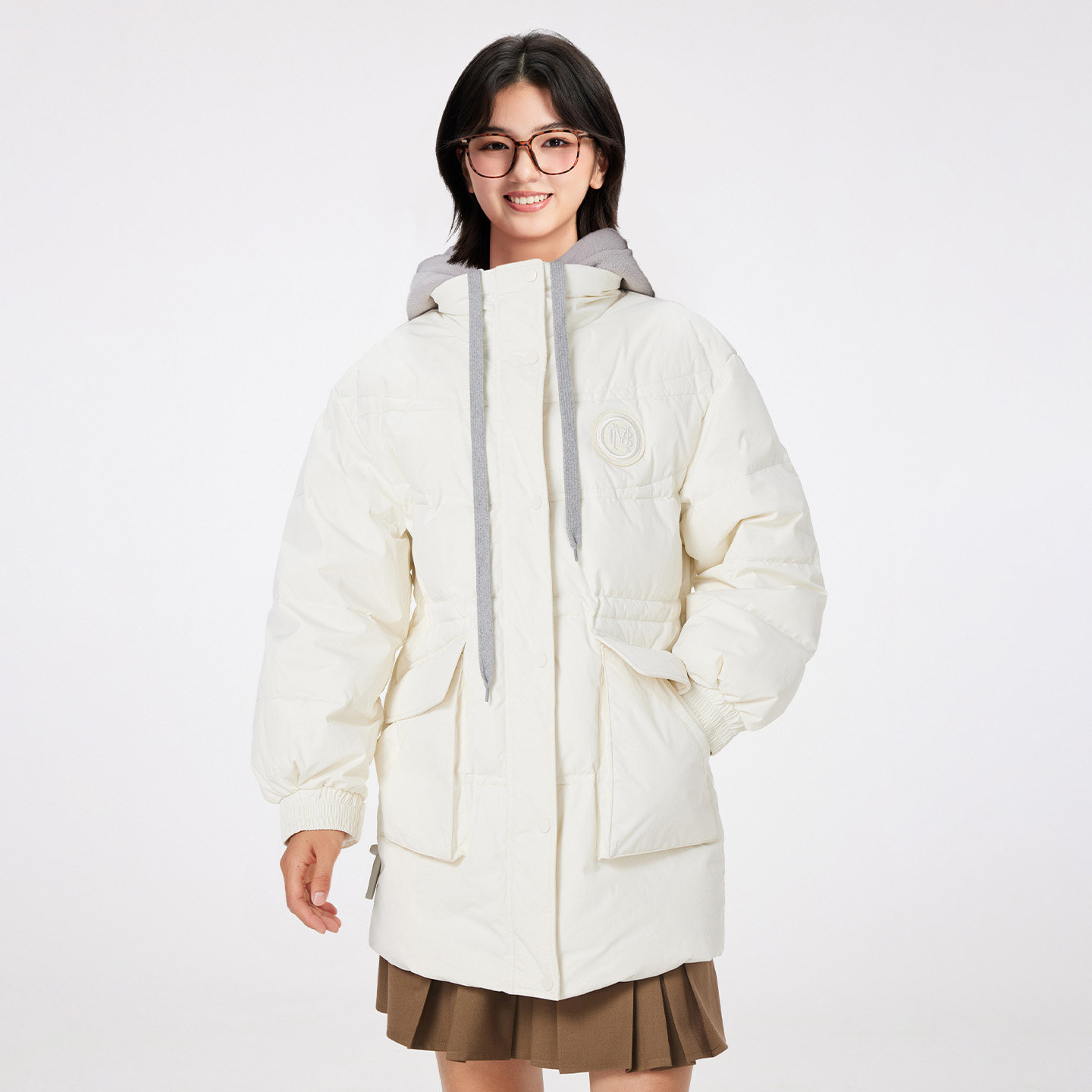 美特斯邦威羽绒服女士冬季新款拼接潮流百搭中长假两件保暖外套女