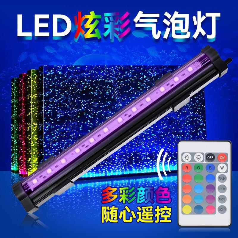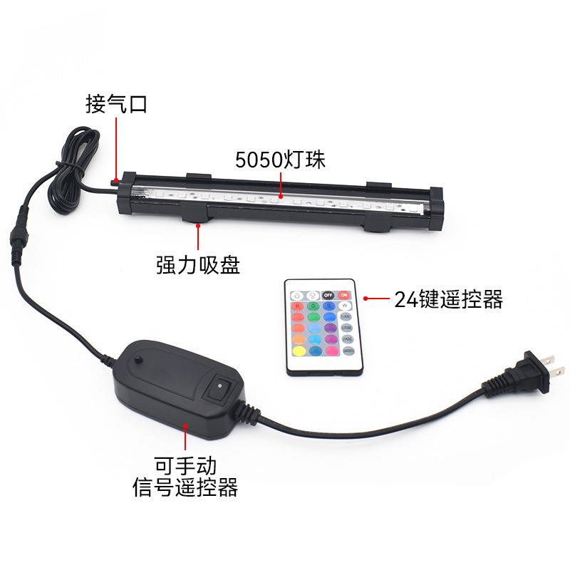 跨境亚马逊水族馆鱼缸LED增氧气泡灯遥控RGB潜水下IP高亮七彩灯