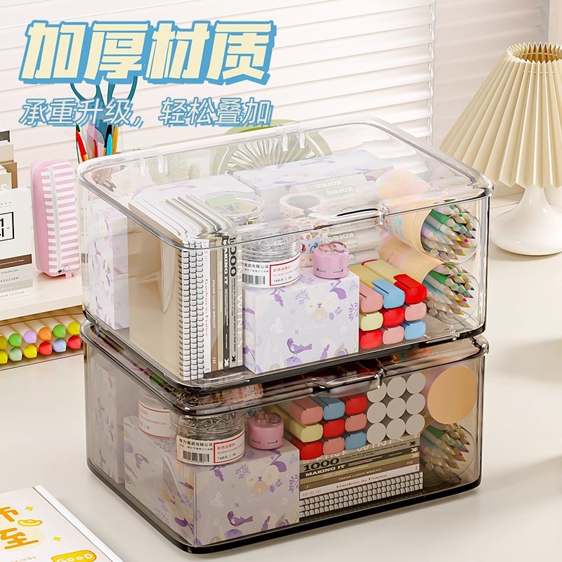 桌面亚克力透明收纳盒翻盖式桌面化妆品防尘收纳盒零食杂物整理盒