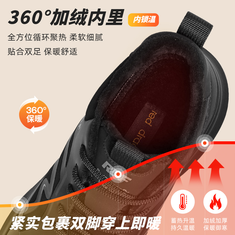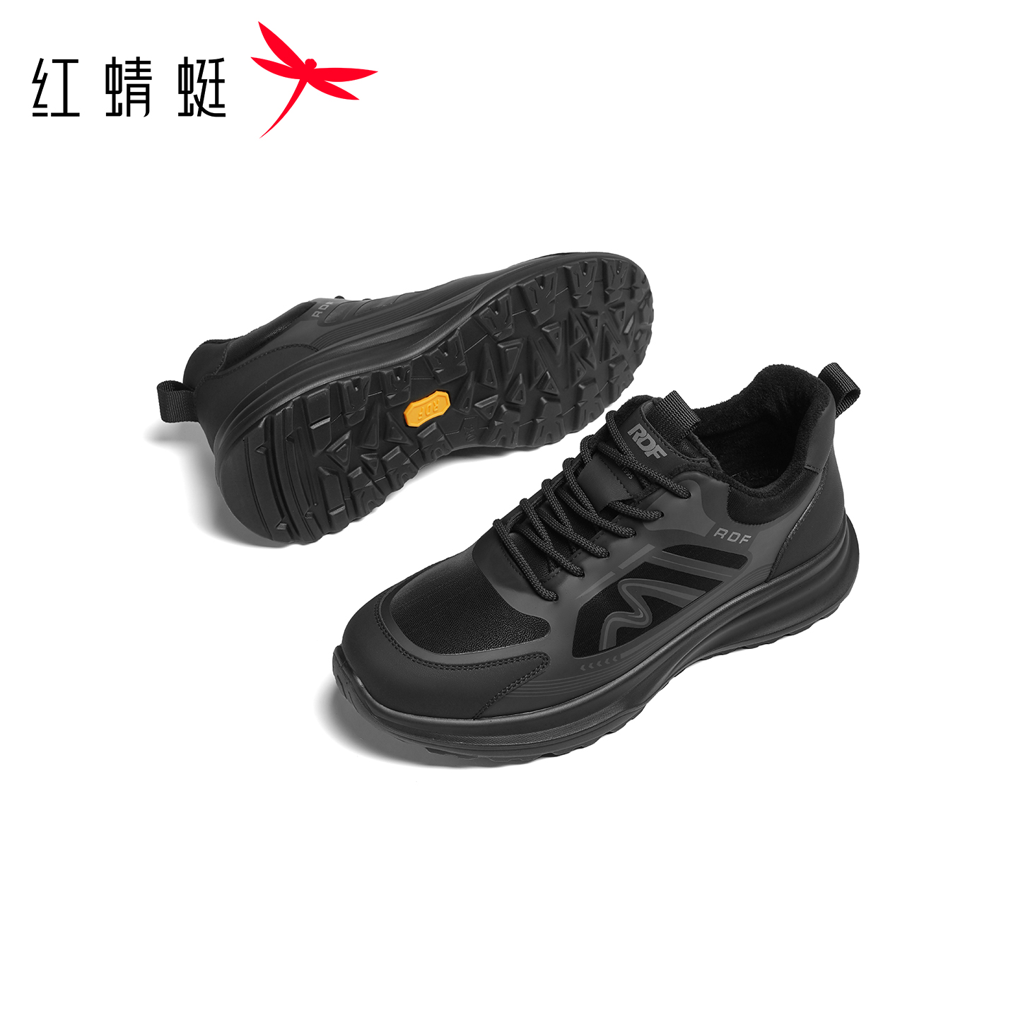 红蜻蜓运动棉鞋2025秋冬新款男鞋厚底系带休闲鞋男士加绒爸爸棉鞋
