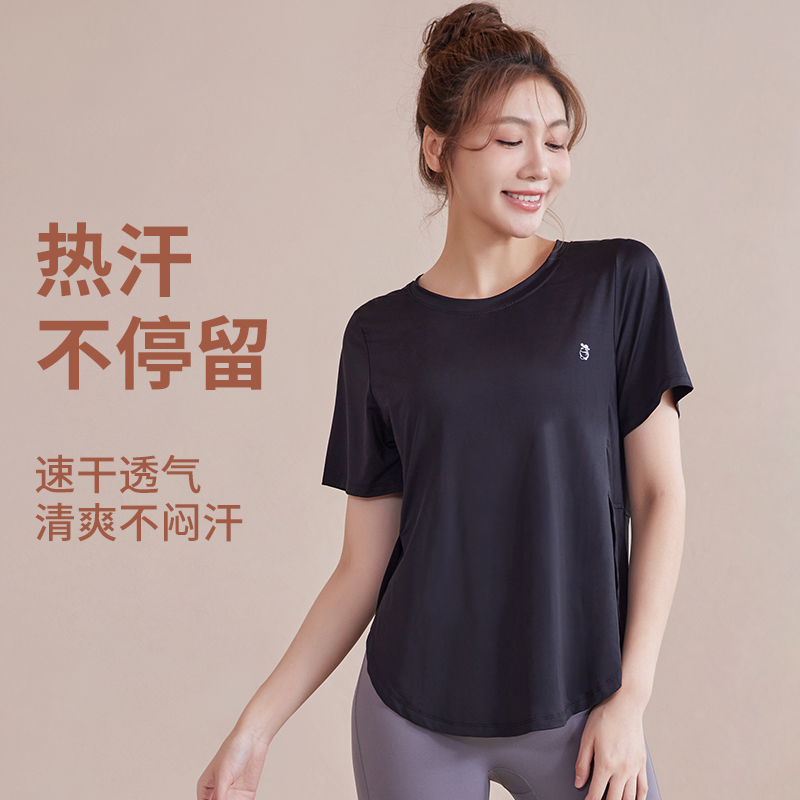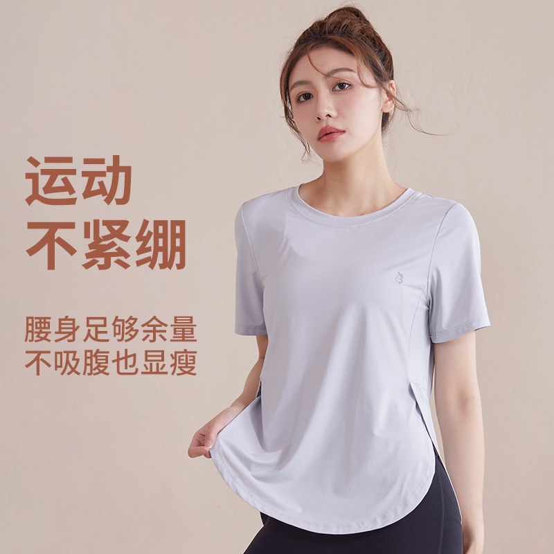 大码夏季运动t恤胖MM短袖宽松女士速干衣跑步瑜伽服开叉透气上衣